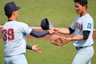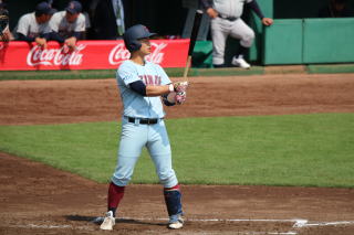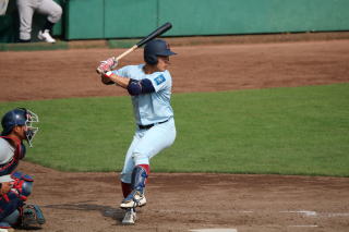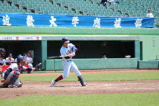 近大の安打製造機、竹村(4・神戸国際大附)が 連盟史上30人目となるリーグ戦通算100安打を達成した。 竹村は1年春から強力打線の主軸を担い、 コンスタントに安打を積み重ねてきた。 また、2017年春、2018年春と二度のベストナインを獲得し、 2018年秋には0.311の打率を残し 近大の神宮大会ベスト4入りへ大いに貢献した。 100安打に王手をかけて挑んだ立命との首位攻防戦(5/6、第5節2回戦)、 延長12回裏に左翼席に叩き込む豪快なサヨナラ本塁打で接戦を制し 記録達成を飾った。 好ペースでの100本安打達成となった竹村は 田口壮(現・オリックスコーチ)が持つ連盟記録 通算123本安打越えへの期待がかかる。 この男の今後の活躍から目が離せない。 |