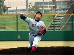 (写真:粘り強い投球で4勝目を挙げた近大・甲藤)