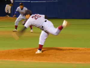 (写真:サヨナラ負けを喫するも好投を見せた近大・大隣)