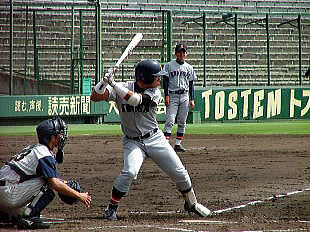 二、三塁から田辺真(2・明徳義塾)の適時三塁打で2点を先制、三回には一死一塁から、山地(2・大阪桐蔭)の左越二点本塁打で加点し、さらに四回には再び田辺真が左越に二点二塁打を放ち、突き放した。