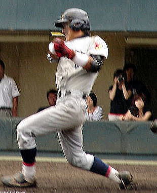 写真:6回に勝ち越し点を放つ関学冨山(4・関西学院)