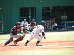関西学生は1点追う7回表、死球と岸(4・同志社大)の内野安打などで1死一、三塁とすると藤本(4・同志社大)の右前適時打で同点。さらに荒木(2・近畿大)、橋本(3・関西大)の連続スクイズで逆転に成功した。8回にも中原(4・近畿大)の左越本塁打で突き放した。