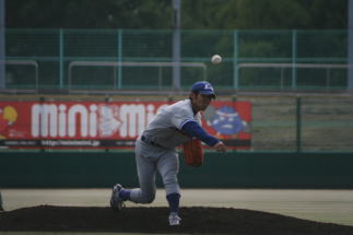 【写真提供/UNN関西学生報道連盟:勝ち投手となった榊原】