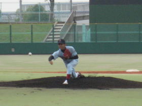 近大が息詰まる投手戦を制し勝ち点を挙げた。 近大は5回、安打と盗塁などで無死三塁とすると國本(2・近大福山)の中前適時打で先制。結局この1点が決勝点となった。投げては谷口友(3・大産大附)が同大打線を散発5安打で完封した。