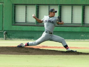 関大の先発武内(2・大体大浪商)は5回を投げ2安打1失点の好投。続く渡部(3・大東)、伊勢(1・明徳義塾)の継投で立命打線を封じた。