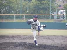 同大が逆転で接戦を制した。1点差で迎えた9回、連打と盗塁で1死2,3塁とすると、3番山本悟(2・岡山城東)の右中間を破る走者一掃の3塁打で逆転し、そのまま逃げ切った。立命は7回に先制するも先発、青木(2・大社)が好投するも最後に捕まった。