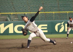 関学先発宮西(4・市尼崎)は要所を締める投球で零封。合計13奪三振で関大の追撃を許さなかった。