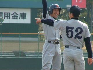 両チーム無得点で迎えた5回表、2死満塁で橋本(3・岡山理大附)が左越適時三塁打を放ち均衡を破った。その後1点を追加し、関大先発武内(2・大体大浪商)が好投。同大に競り勝った。