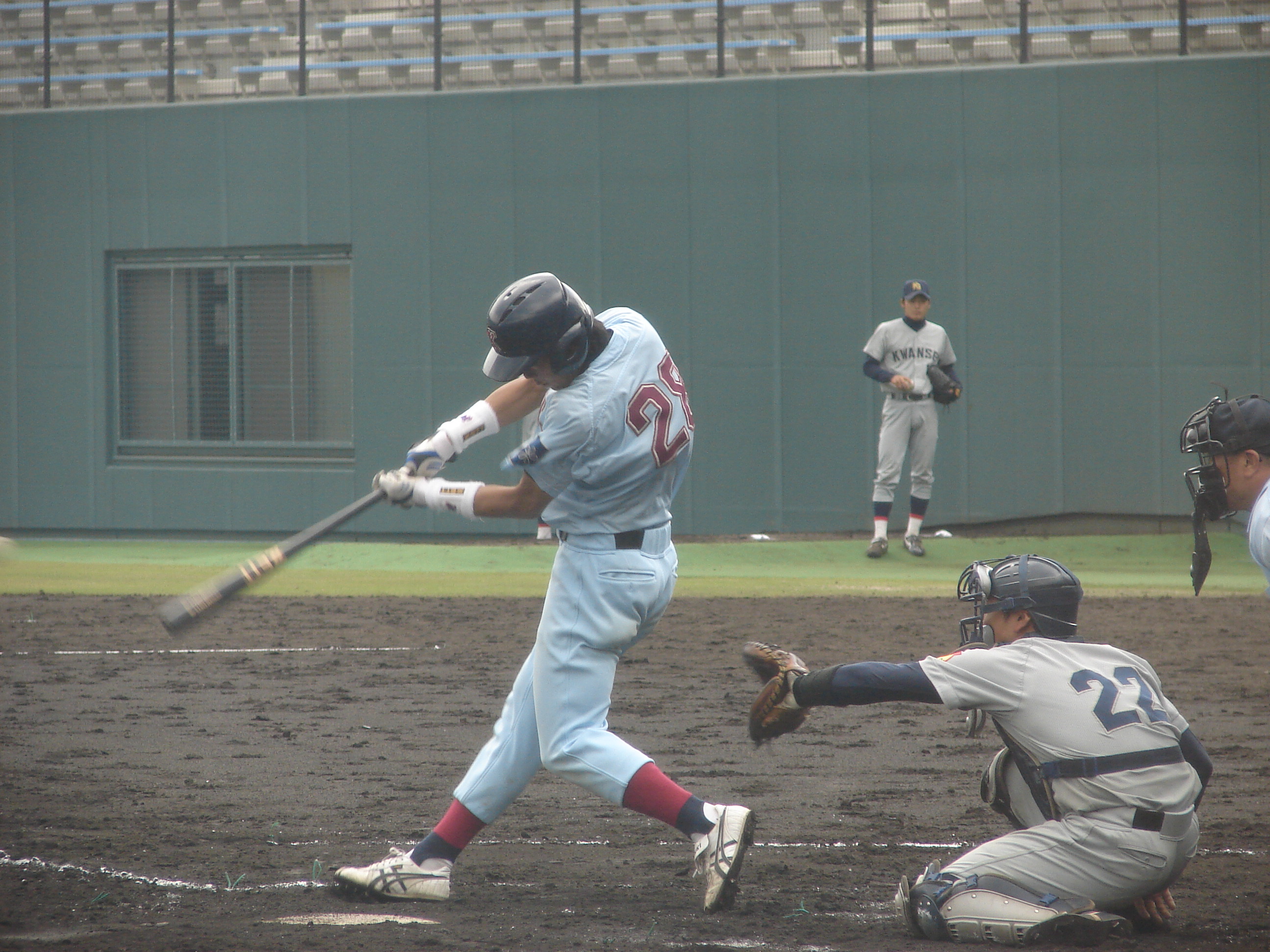 関学に逆転を許した7回表、2死一、二塁で小瀬(4・尽誠学園)の中前打で同点にすると続く溝端(2・近大附)の中前適時打で勝ち越した。