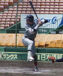1点を先制し迎えた7回表、先頭の長谷川(3・東筑)の安打から犠打を挟み4連打でさらに4点を追加、続く8回には釜谷(4・社)の中越本塁打を放ち。京大を突き放した。
