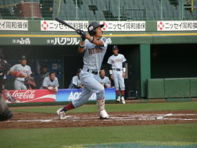 近大は同点で迎えた8回、一死2塁から溝端(3・近大附)の右中間を破る三塁打で勝ち越しに成功した。更にこの回、小林晃(3・大阪桐蔭)の右前適時打で1点を追加し、関学を突き放した。