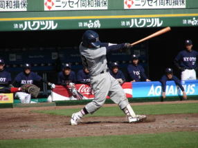 京大は初回に石川(4・北野)の二塁打を足がかりに、水木(3・北野)の左前適時打で先制するも、その後は快音が聞かれず、連敗を喫した。