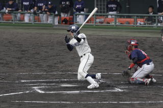 京大は先発の安土(3・寝屋川)が好投したが、打線が抑えこまれ勝ち点を逃した。