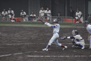 近大は2対2の同点で迎えた延長11回、藤川(4・広陵)の適時打で勝ち越しに成功。さらにこの回、荒木貴(4・帝京第三)の2点適時打、小林晃(4・大阪桐蔭)の適時打で追加点を挙げ、一気に同大を突き放した。