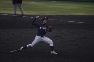 京大は初回、藤田(4・兵庫)の2点適時打と水木(4・北野)の適時二塁打で3点を先制。続く2回には澤井(2・長田)の適時打などでさらに3点を追加。6回に一度は追いつかれるも、9回に澤井、水木の適時打で2点を勝ち越し、追いすがる同大をついに打ち負かした。