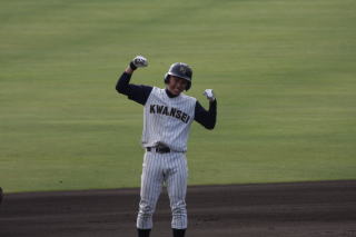 関学は、1−1の6回、中村(4・三重)の左越え適時二塁打で勝ち越しに成功。8、9回にも1点ずつを加えた。