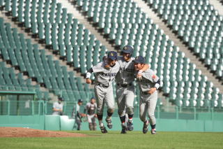 両校無得点で迎えた延長11回裏、1死二塁から、谷(2・大産大附)が一塁線を破るサヨナラ二塁打を放った。