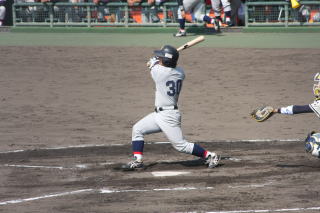 関学は、初回一死二塁から芝田(3・智辯和歌山)の中前適時打と、松浦(4・金光学園)の左越え適時二塁打で2点を先制する。続く2回には、中島一(1・報徳学園)の右越えソロ本塁打で追加点を挙げる。その後、4対1となって迎えた9回、反撃に出たい同大は一死一、二塁の好機を作ると、4番生島(4・大阪桐蔭)と6番關(1・今治西)の2本の右前安打で1点差に詰め寄る。しかし、最後は関学先発の蒔野(3・名古屋)に抑え込まれ、万事休した。蒔野は9回を粘り強く投げきり、3勝目を挙げた。