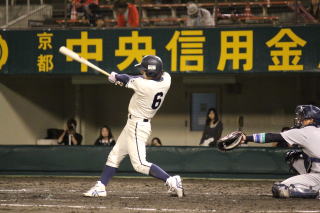 立命有利かと思われたが、4連覇を目指す同大が王者の意地を見せる。圧巻は5回。立命2番手の井奥(2・報徳学園)を攻め立て一死満塁の好機を作ると、今季打撃好調の川越(4・佐賀西)が二打席連続となる適時三塁打を放ち同点に追いつく。その回、救援投手の國正(2・茅ヶ崎北陵)の二塁打などで一挙5点を奪い逆転に成功する。