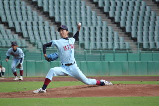 近大は0対0で迎えた6回、荒木(3・関西)の犠飛と池田祥(4・富山商)の中前適時打で2点を先制。その2点を白井(4・京都外大西)と中後(4・近大新宮)の継投で守りきった。