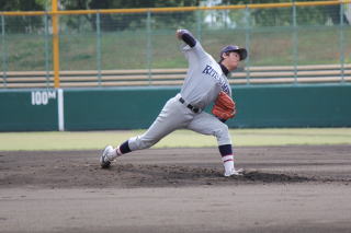 前半戦を0対0で折り返し迎えた6回、立命は瀧野(3・今治西)の左翼線二塁打で無死二塁とすると、続く藤居(3・綾羽)の左前適時打で先制した。更に7回宮本剛(3・浜松商)と瀧野の適時打で2点を追加した。8回にも西川大(3・天理)のスクイズで得点し同大を突き放した。