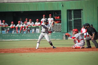 関学は同点で迎えた7回、一死一三塁から野田(4・川西緑台)の適時三塁打で2点を勝ち越すと籾山(4・報徳学園)の適時二塁打で2点、そして松原鴻(2・大阪桐蔭)の適時三塁打で1点を追加し、計5得点と打線が爆発した。