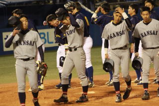 【写真:あと一歩足りず悔し涙をのむ関西大】 |