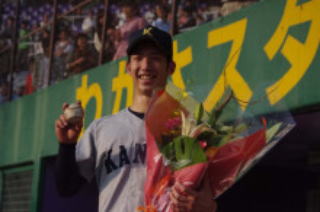 先発の石田光(4・近江)は関学に付け入る隙を与えず、リーグ史上10人目の通算30勝目を完封で飾った。