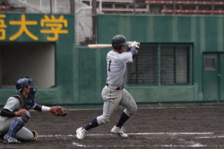 立命は2-0で迎えた6回、先頭の早田(3・天理)が左前安打で出塁し、犠打で一死二塁とすると、代打の谷口(4・近大新宮)が右前適時打、同じく代打山田(4・福知山成美)が一塁内野安打を放ち同点に追いつく。さらに続く池内(4・今治西)の2点中前適時打で逆転に成功する。続く打者も3連打を浴びせ、この回8安打7得点の猛攻を見せた。