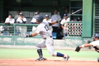 7回には、相手の失策と片濱の安打で一死一、三塁とすると、大倉の適時打と相手の失策などで3点を追加し、京大を大きく突き放した。