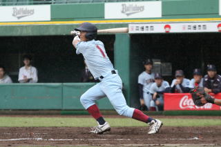 近大は4回、先頭の佐藤(1・仁川学院)が内野安打と敵失で出塁し、犠打で一死三塁の好機を作ると、谷川(2・星稜)の適時二塁打で1点を先制する。