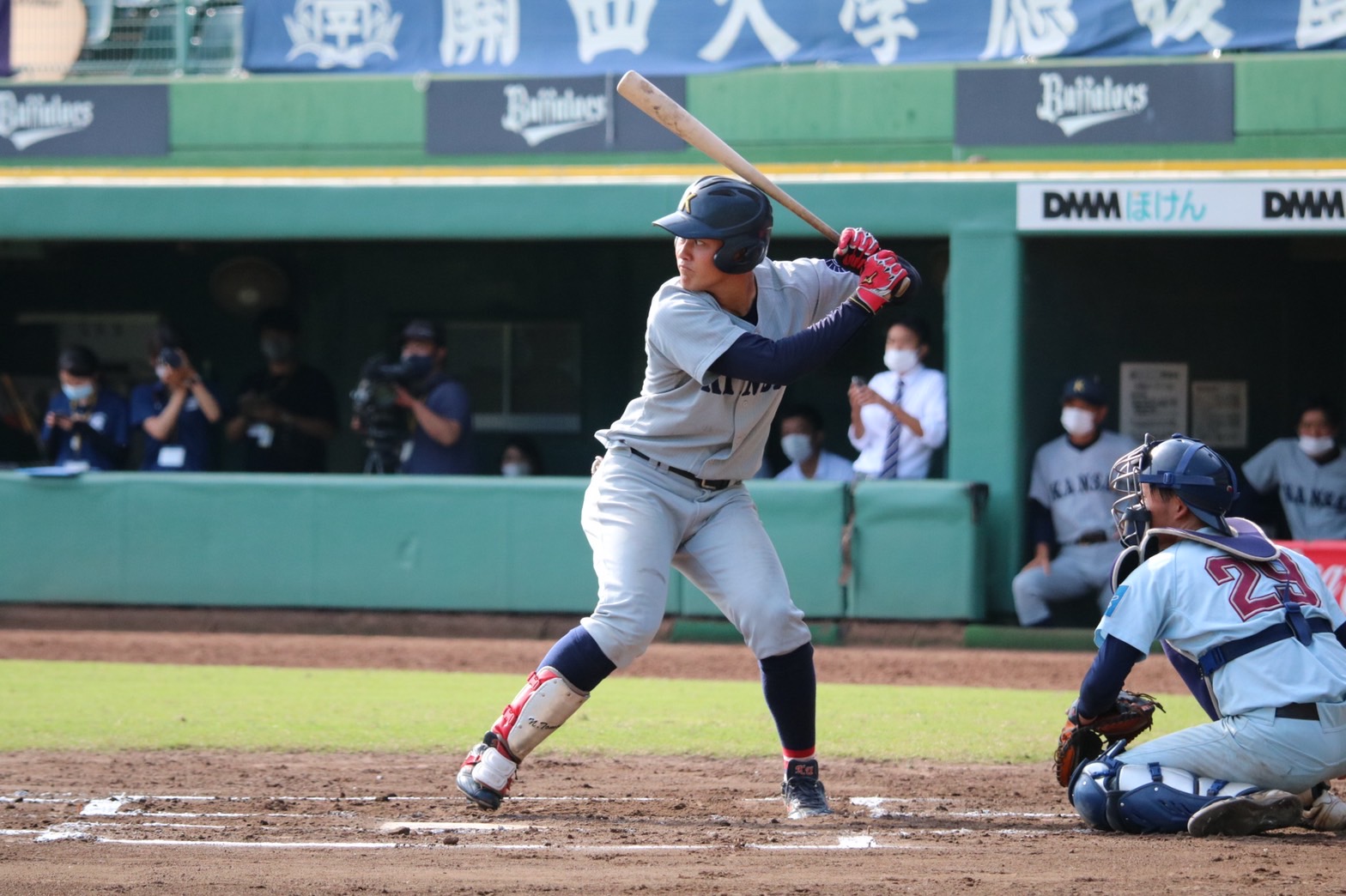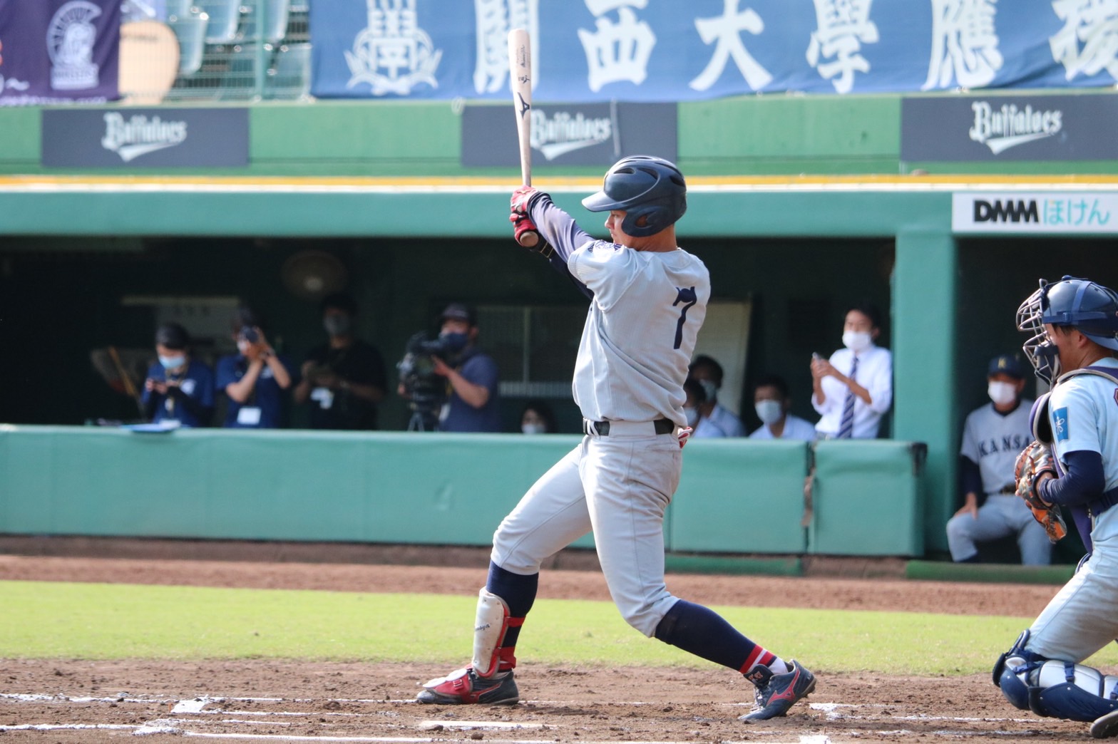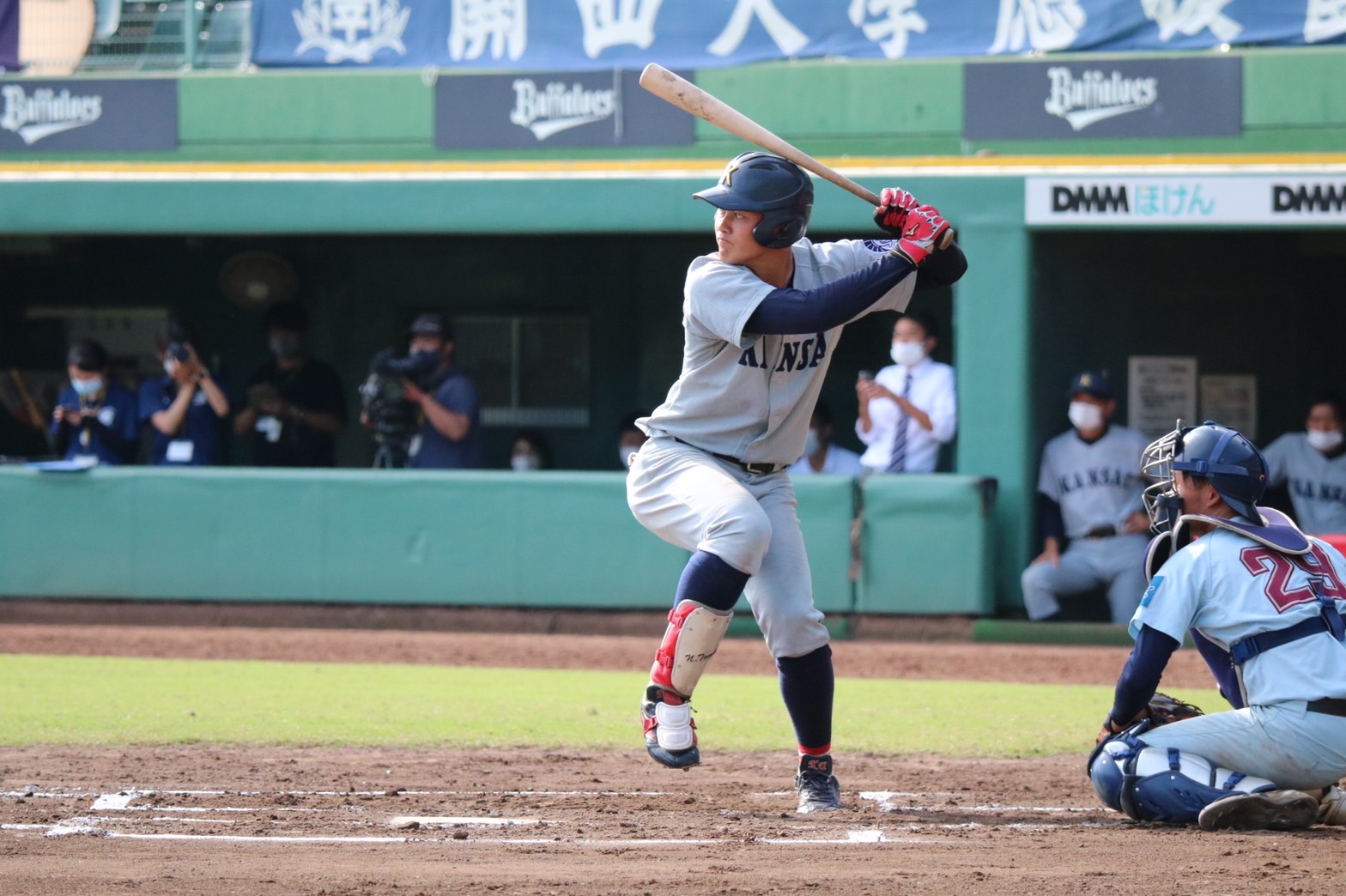 関大の安打製造機、野口(4・鳴門渦潮)が 連盟史上31人目となるリーグ戦通算100安打を達成した。 野口は1年春から強力打線の主軸を担い、 コンスタントに安打を積み重ねてきた。 また、2019年秋、2020年秋、2021春と3季連続でベストナインを獲得し、 2019年秋には0.352の高打率で 関大の明治神宮大会準優勝へ大いに貢献した。 100安打に王手をかけて挑んだ同大との2回戦(10/17、第6節2回戦)で 4打数2安打とし、記録達成を飾った。 20春が中止になりながらも100本安打達成となった野口、 この男の今後の活躍から目が離せない。 |