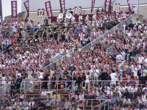 (写真:左 同志社大学応援席、右 立命館大学応援席)